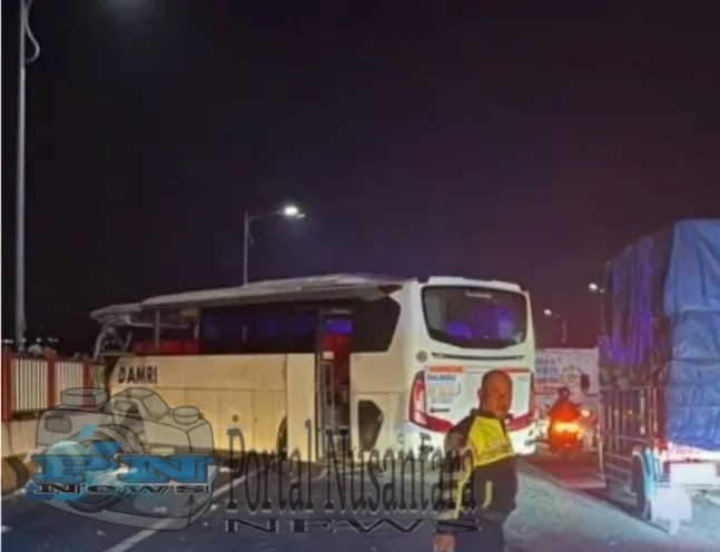 Bangkalan, Portal Nusantara News.id — Kecelakaan maut terjadi di Jembatan Suramadu pada Kamis (30/10/2025) malam. Sebuah bus Damri yang melaju dari arah Surabaya menuju Madura menabrak bagian belakang truk gandeng di depannya hingga menyebabkan dua orang meninggal dunia di tempat.