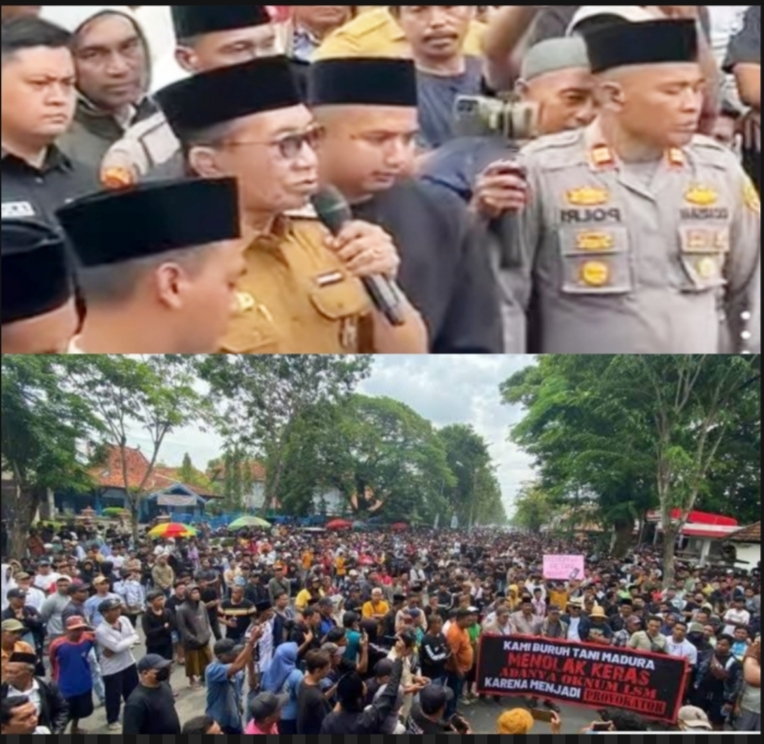 Massa aksi ditemui langsung oleh Bupati dan Wakil Bupati Pamekasan, Kapolres Pamekasan, serta perwakilan Bea Cukai Madura.
