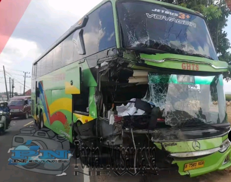 Insiden itu melibatkan bus Gunung Harta dengan nomor polisi B 7581 KGA dan sebuah dump truk, mengakibatkan dua orang mengalami luka-luka.