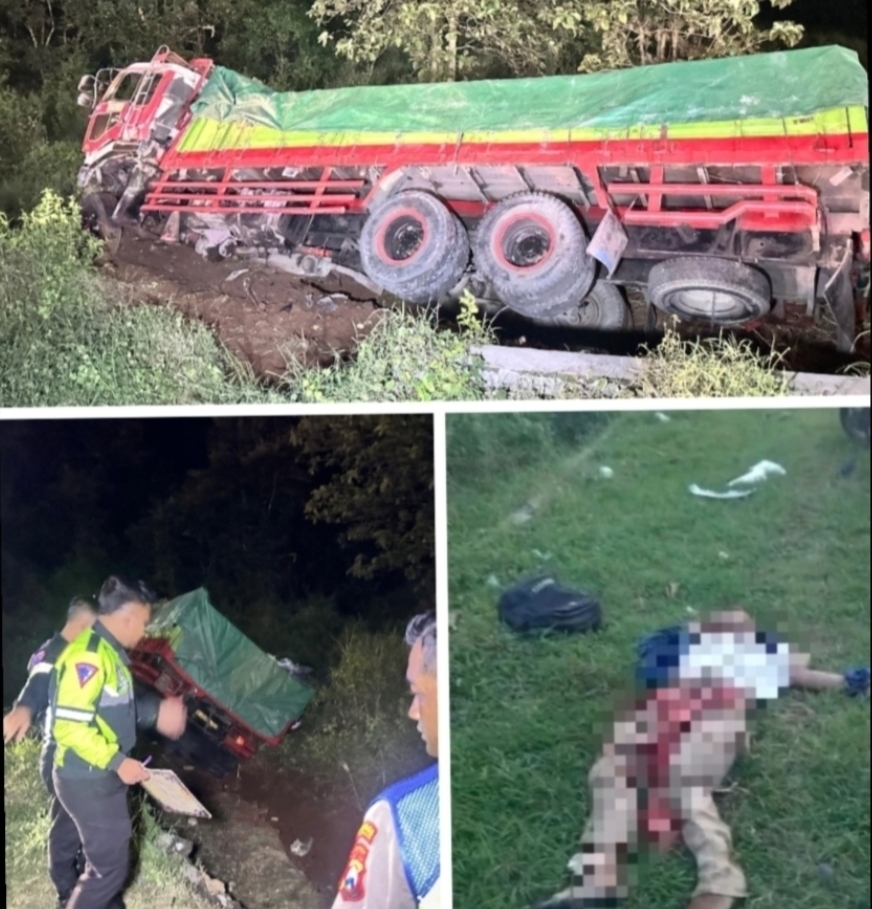 Portal Nusantara News.id,-Bangkalan – Kecelakaan lalu lintas tragis terjadi di Jalan Raya Gunung Gigir, Desa Lombang Dajah, Kecamatan Blega, Kabupaten Bangkalan, pada Rabu (25/3/2026) sekitar pukul 17.30 WIB. Insiden tersebut melibatkan sebuah truk Nissan Tronton bernomor polisi B-9952-AZ dengan dua sepeda motor Honda Vario.