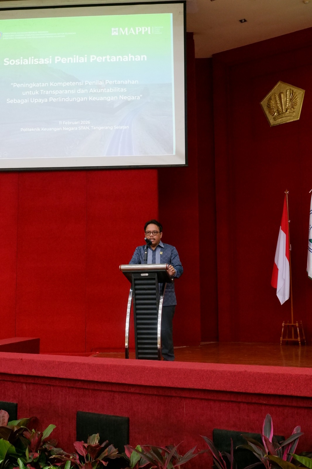 Tangerang Selatan, portalnusantaranews — Ketua Umum Dewan Pimpinan Nasional (DPN) Masyarakat Profesi Penilai Indonesia (MAPPI), Budi Prasodjo menyoroti fenomena kriminalisasi terhadap penilai pertanahan setelah sejumlah penilai ditetapkan sebagai tersangka dalam dua bulan terakhir. Pernyataan itu ia sampaikan dalam rangkaian sosialisasi Penilai Pertanahan bertema “Peningkatan Kompetensi Penilai Pertanahan untuk Transparansi dan Akuntabilitas sebagai Upaya Perlindungan Keuangan Negara” di Politeknik Keuangan Negara (PKN) STAN, Rabu (11/2/2026).